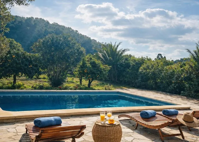 Villa Es Puig, Piscina Y Vistas A La Montana Santa Margalida dysponuje tarasem z widokiem na górę, 49 min jazdy od lotniska Palma de Mallorca.
